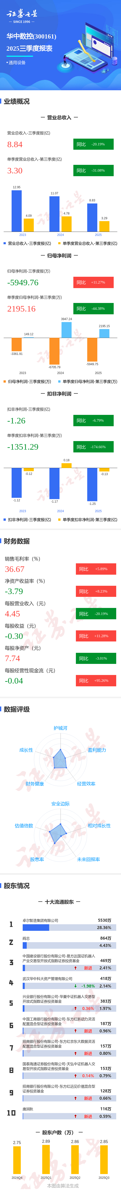 证券之星消息,华中数控2025年三季报显示,公司主营收入8.84亿元,同比下降20.19%;归母净利润-5949.76万元,同比上升11.27%;扣非净利润-1.26亿元,同比下降6.79%;其中2025年第三季度,公司单季度主营收入3.3亿元,同比下降31.09%;单季度归母净利润2195.16万元,同比下降44.39%;单季度扣非净利润-1351.29万元,同比下降174.67%;负债率62.48%,投资收益517.16万元,财务费用2975.47万元,毛利率36.67%。