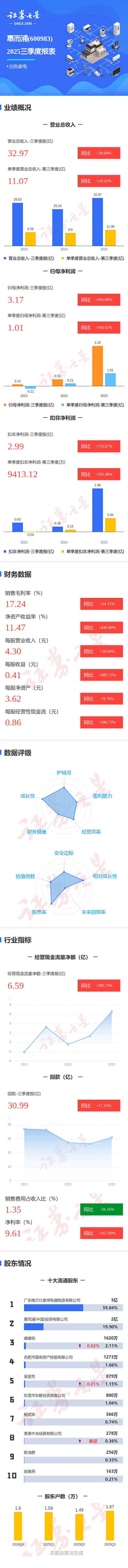 证券之星消息,惠而浦2025年三季报显示,公司主营收入32.97亿元,同比上升30.61%;归母净利润3.17亿元,同比上升496.88%;扣非净利润2.99亿元,同比上升733.68%;其中2025年第三季度,公司单季度主营收入11.07亿元,同比上升24.21%;单季度归母净利润1.01亿元,同比上升360.03%;单季度扣非净利润9413.12万元,同比上升503.49%;负债率51.26%,财务费用-2188.7万元,毛利率17.24%。
