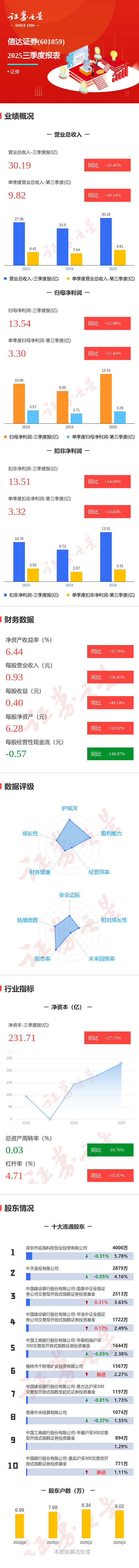 证券之星消息,信达证券2025年三季报显示,公司主营收入30.19亿元,同比上升28.46%;归母净利润13.54亿元,同比上升52.89%;扣非净利润13.51亿元,同比上升54.69%;其中2025年第三季度,公司单季度主营收入9.82亿元,同比上升30.14%;单季度归母净利润3.3亿元,同比上升21.44%;单季度扣非净利润3.32亿元,同比上升23.85%;负债率78.77%,投资收益17.23亿元。
