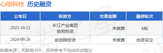 证券之星消息,根据天眼查APP于10月22日公布的信息整理,武汉心电科技有限公司A轮融资,融资额未披露,参与投资的机构包括长江产业集团,哈勃投资。