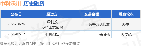 证券之星消息,根据天眼查APP于10月26日公布的信息整理,中科沃川(苏州)新材料科技有限公司天使+融资,融资额数千万人民币,参与投资的机构包括深创投,苏州国发创投。