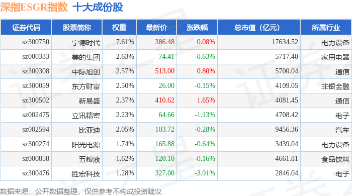 证券之星消息,10月28日,深指ESGR(470026)指数报收于19255.65点,跌0.42%,成交5261.77亿元,换手率1.8%。当日该指数成份股中,上涨的有130家,中钨高新以10.02%的涨幅领涨,下跌的有262家,铜陵有色以10.07%的跌幅领跌。