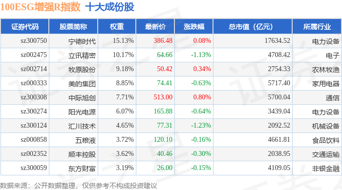 资金流向方面,100ESG增强R(470033)指数成份股当日主力资金净流出合计29.66亿元,游资资金净流入合计16.31亿元,散户资金净流入合计13.35亿元。成份股资金流向详情见下表: