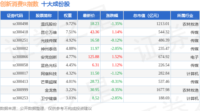 资金流向方面,创新消费R(470041)指数成份股当日主力资金净流出合计5277.59万元,游资资金净流入合计3602.1万元,散户资金净流入合计1675.5万元。成份股资金流向详情见下表: