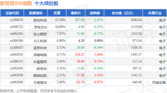 资金流向方面,新型显示R(470048)指数成份股当日主力资金净流出合计19.72亿元,游资资金净流出合计4511.85万元,散户资金净流入合计20.17亿元。成份股资金流向详情见下表: