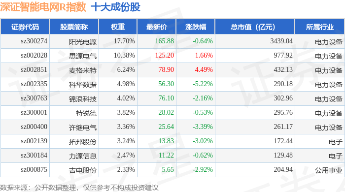 资金流向方面,深证智能电网R(470054)指数成份股当日主力资金净流出合计9.71亿元,游资资金净流出合计6084.02万元,散户资金净流入合计10.31亿元。成份股资金流向详情见下表: