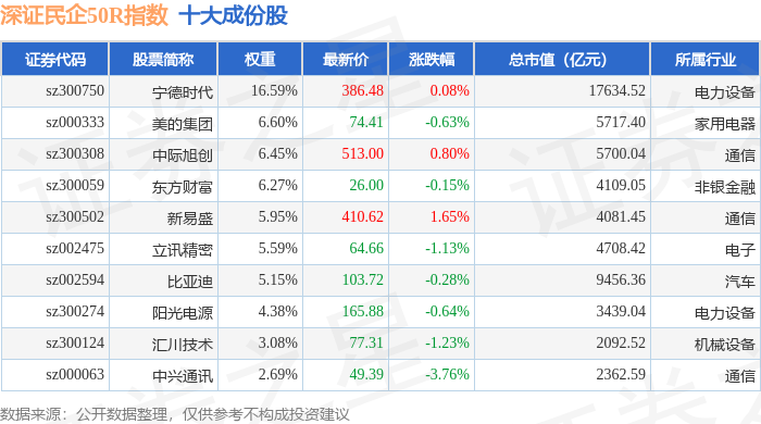 证券之星消息,10月28日,深证民企50R(470057)指数报收于4029.57点,跌0.15%,成交1783.31亿元,换手率2.04%。当日该指数成份股中,上涨的有16家,三花智控以8.21%的涨幅领涨,下跌的有34家,龙佰集团以4.91%的跌幅领跌。