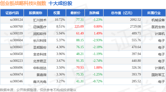 创业板战略科技R(471004)指数十大成份股详情如下: