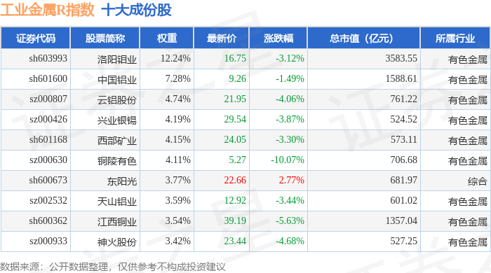 资金流向方面,工业金属R(480043)指数成份股当日主力资金净流出合计47.61亿元,游资资金净流入合计2.99亿元,散户资金净流入合计44.62亿元。成份股资金流向详情见下表: