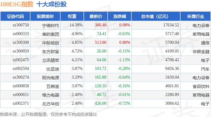 证券之星消息,10月28日,100ESG(970027)指数报收于5910.98点,跌0.36%,成交1993.7亿元,换手率1.23%。当日该指数成份股中,上涨的有21家,三花智控以8.21%的涨幅领涨,下跌的有58家,德赛西威以7.07%的跌幅领跌。