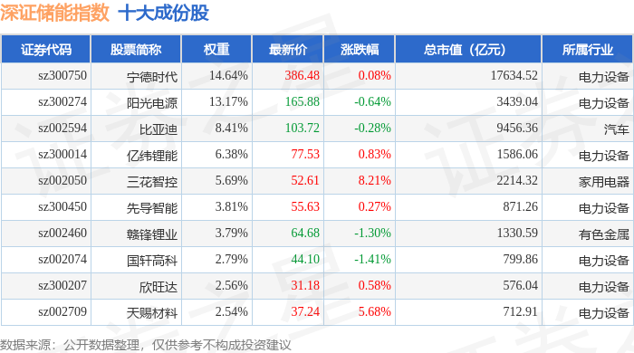 深证储能(970036)指数十大成份股详情如下: