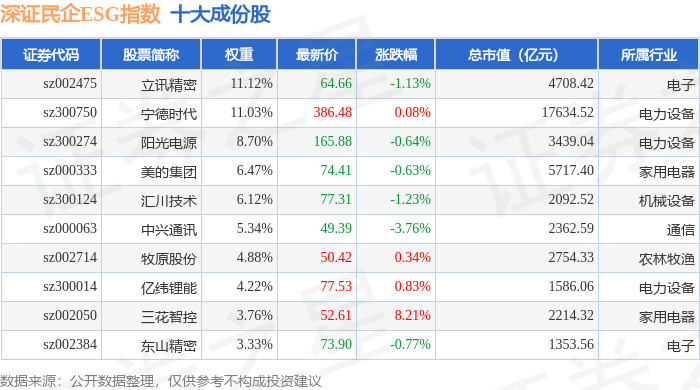 资金流向方面,深证民企ESG(970056)指数成份股当日主力资金净流出合计44.16亿元,游资资金净流入合计16.54亿元,散户资金净流入合计27.61亿元。成份股资金流向详情见下表: