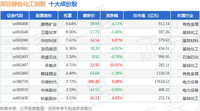 深证绿色化工(970076)指数十大成份股详情如下: