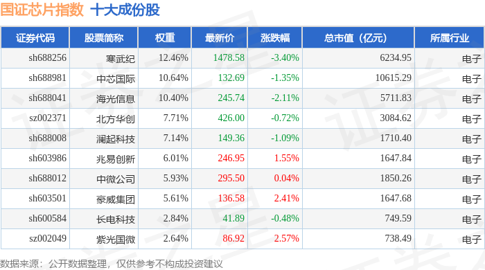 证券之星消息,10月28日,国证芯片(980017)指数报收于13809.6点,跌0.78%,成交1100.51亿元,换手率3.61%。当日该指数成份股中,上涨的有13家,卓胜微以2.69%的涨幅领涨,下跌的有17家,盛美上海以4.2%的跌幅领跌。