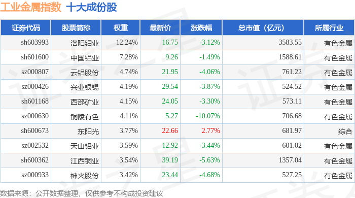 资金流向方面,工业金属(980043)指数成份股当日主力资金净流出合计47.61亿元,游资资金净流入合计2.99亿元,散户资金净流入合计44.62亿元。成份股资金流向详情见下表: