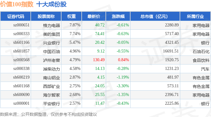 证券之星消息,10月28日,价值100(980081)指数报收于4241.54点,跌0.59%,成交533.81亿元,换手率0.88%。当日该指数成份股中,上涨的有31家,康力电梯以7.33%的涨幅领涨,下跌的有66家,物产中大以4.7%的跌幅领跌。