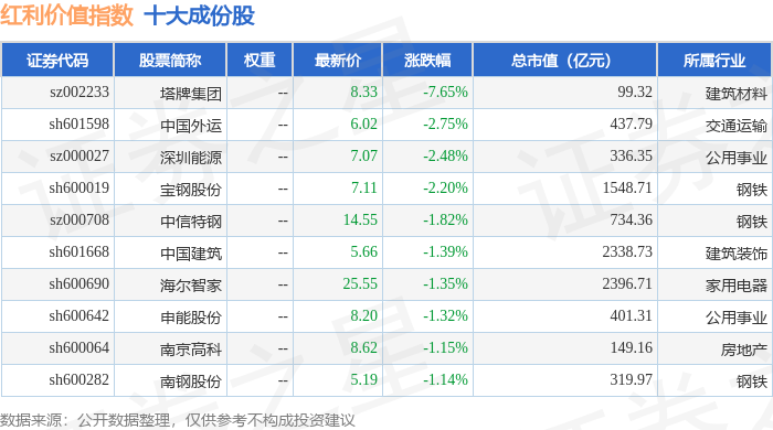 红利价值(989016)指数十大成份股详情如下: