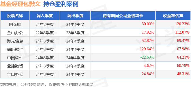 包斅文管理的财通资管科技创新一年定开混合基金在24年2季度买入同花顺,在持有2个季度后在24年4季度卖出。持有期间的估算收益率为120.23%,持有期间同花顺在2023年到2024年的年报归属净利润增幅达30%。