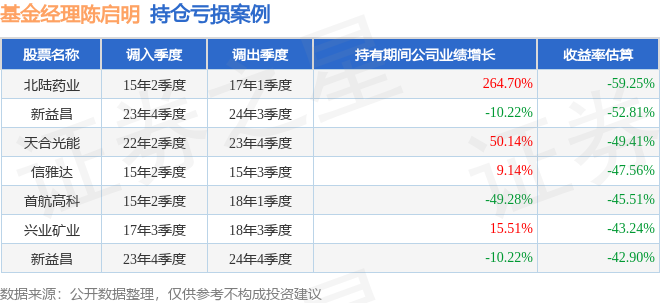 陈启明管理的华富竞争力优选混合A基金在16年2季度买入益丰药房,在持有3年又0个季度后在19年2季度卖出。持有期间的估算收益率为96.12%,持有期间益丰药房在2016年到2019年的年报营业总收入增幅达175.23%。