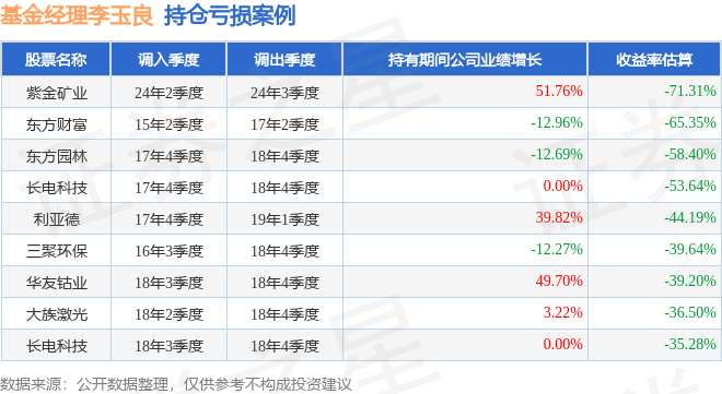 李玉良管理的诺安景鑫灵活配置混合基金在24年2季度买入紫金矿业,在持有1个季度后在24年3季度卖出。持有期间的估算收益率为-71.31%,持有期间紫金矿业在2023年到2024年的年报归属净利润增幅达51.76%。