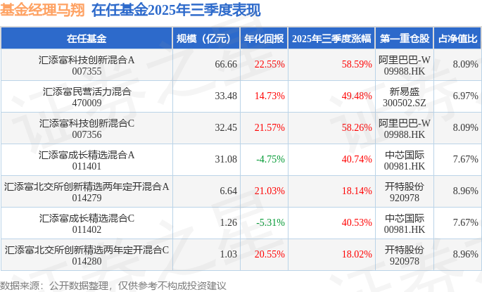 证券之星消息,截止2025年三季度末,基金经理马翔旗下共管理7只基金,本季度表现最佳的为汇添富科技创新混合A(007355),季度净值涨58.59%。