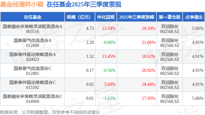 证券之星消息,截止2025年三季度末,基金经理林小聪旗下共管理6只基金,本季度表现最佳的为国泰景气优选混合A(012880),季度净值涨21.06%。