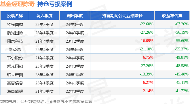 陈奇管理的华富国泰民安灵活配置混合A基金在22年3季度买入紫光国微,在持有2年又0个季度后在24年3季度卖出。持有期间的估算收益率为-67.26%,持有期间紫光国微在2022年到2024年的年报营业总收入降幅为22.6%。