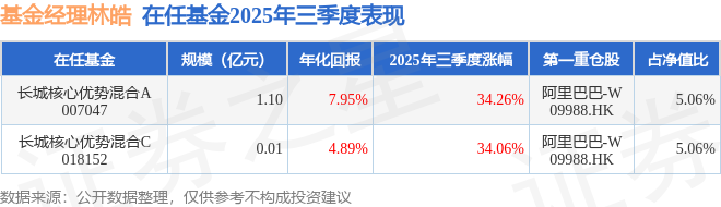 证券之星消息,截止2025年三季度末,基金经理林皓旗下共管理2只基金,本季度表现最佳的为长城核心优势混合A(007047),季度净值涨34.26%。