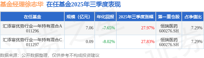 证券之星消息,截止2025年三季度末,基金经理徐志华旗下共管理2只基金,本季度表现最佳的为汇添富优势行业一年持有混合A(011296),季度净值涨27.97%。