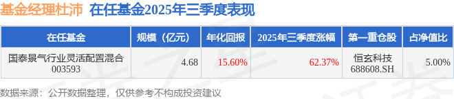 证券之星消息,截止2025年三季度末,基金经理杜沛管理的国泰景气行业灵活配置混合(003593)季度净值涨62.37%。