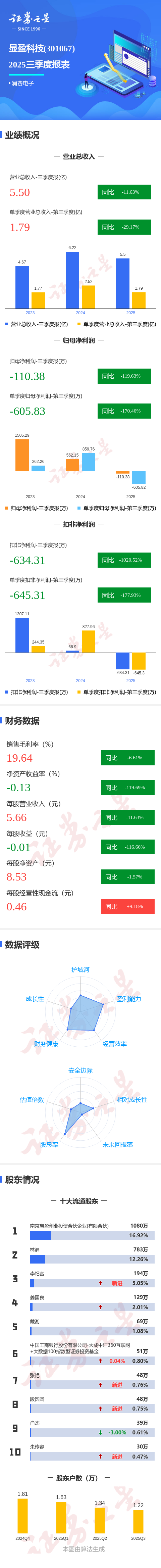 证券之星消息,显盈科技2025年三季报显示,公司主营收入5.5亿元,同比下降11.64%;归母净利润-110.38万元,同比下降119.64%;扣非净利润-634.31万元,同比下降1020.52%;其中2025年第三季度,公司单季度主营收入1.79亿元,同比下降29.17%;单季度归母净利润-605.83万元,同比下降170.46%;单季度扣非净利润-645.31万元,同比下降177.94%;负债率30.8%,投资收益516.02万元,财务费用232.02万元,毛利率19.64%。