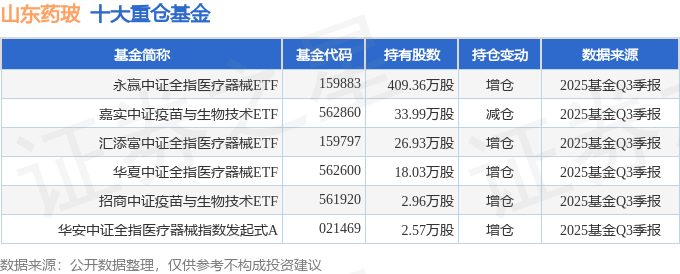持有山东药玻最多的基金为永赢中证全指医疗器械ETF,目前规模为47.3亿元,最新净值0.5328(10月28日),较上一交易日下跌0.13%,近一年上涨1.08%。该基金现任基金经理为储可凡。