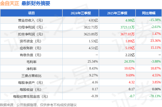 据证券之星公开数据整理,近期金自天正(600560)发布2025年三季报。截至本报告期末,公司营业总收入4.08亿元,同比下降15.38%,归母净利润3723.11万元,同比下降2.61%。按单季度数据看,第三季度营业总收入2.06亿元,同比上升6.31%,第三季度归母净利润1557.61万元,同比下降21.38%。本报告期金自天正存货明显上升,存货同比增幅达32.79%。
