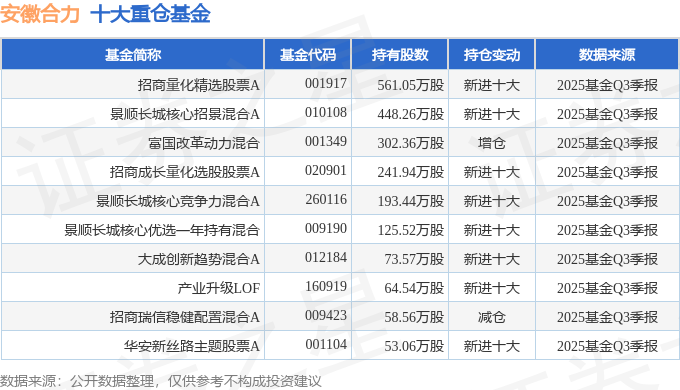 持有安徽合力最多的基金为招商量化精选股票A,目前规模为36.63亿元,最新净值3.6301(10月27日),较上一交易日上涨1.13%,近一年上涨48.62%。该基金现任基金经理为王平。