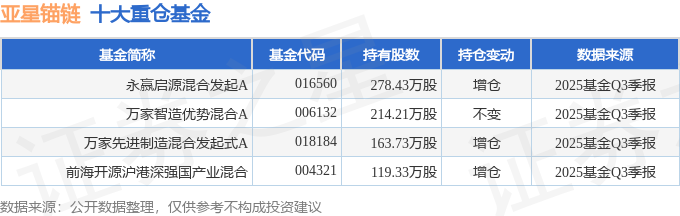 持有亚星锚链最多的基金为永赢启源混合发起A,目前规模为0.16亿元,最新净值1.094(10月28日),较上一交易日上涨1.89%,近一年下跌5.4%。该基金现任基金经理为沈平虹。