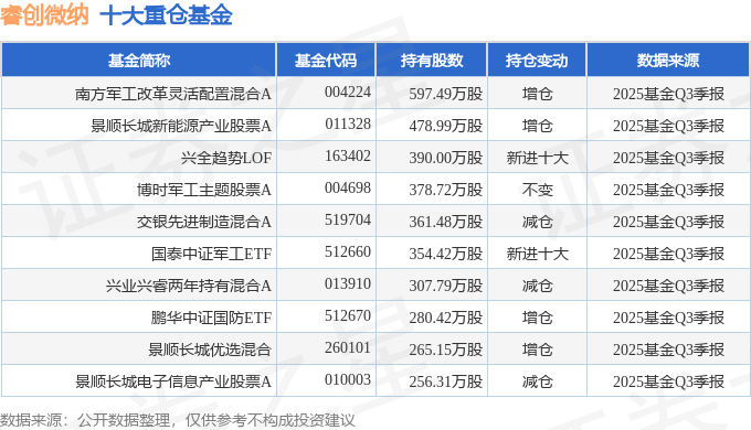 持有睿创微纳最多的基金为南方军工改革灵活配置混合A,目前规模为36.47亿元,最新净值1.3725(10月27日),较上一交易日上涨0.98%,近一年上涨12.04%。该基金现任基金经理为邹承原。