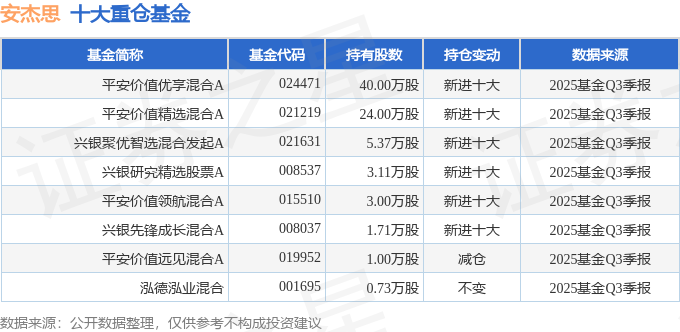 持有安杰思最多的基金为平安价值优享混合A,目前规模为3.26亿元,最新净值1.0196(10月28日),较上一交易日下跌0.24%。该基金现任基金经理为何杰。
