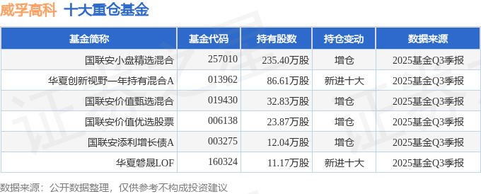 持有威孚高科最多的基金为国联安小盘精选混合,目前规模为9.2亿元,最新净值1.125(10月28日),较上一交易日下跌0.27%,近一年上涨16.29%。该基金现任基金经理为邹新进。