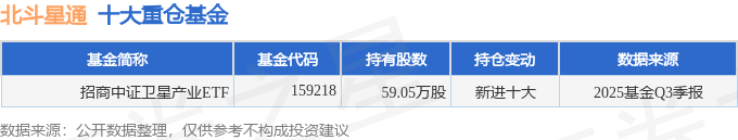 持有北斗星通最多的基金为招商中证卫星产业ETF,目前规模为3.86亿元,最新净值1.2413(10月28日),较上一交易日下跌0.04%。该基金现任基金经理为许荣漫。