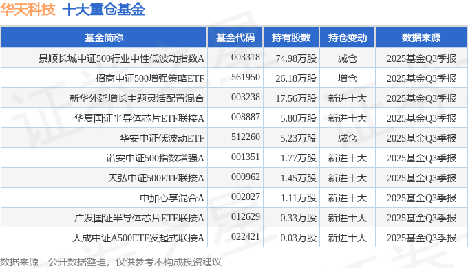持有华天科技最多的基金为景顺长城中证500行业中性低波动指数A,目前规模为7.78亿元,最新净值1.6771(10月27日),较上一交易日上涨1.19%,近一年上涨19.8%。该基金现任基金经理为曾理。