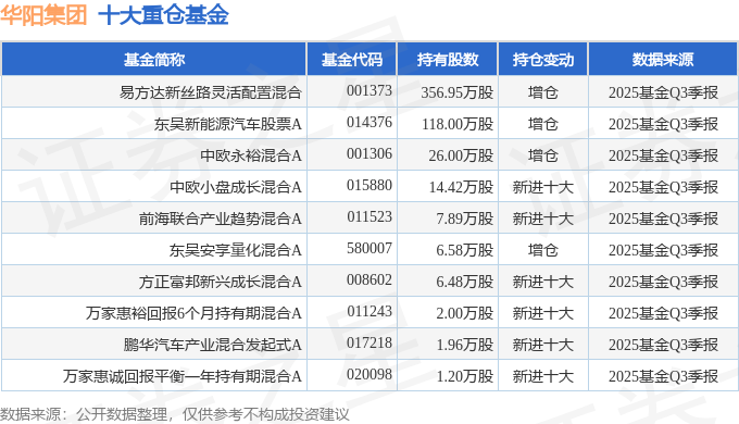 持有华阳集团最多的基金为易方达新丝路灵活配置混合,目前规模为31.11亿元,最新净值2.012(10月28日),较上一交易日下跌0.94%,近一年下跌2.06%。该基金现任基金经理为王司南 邱天蓝。
