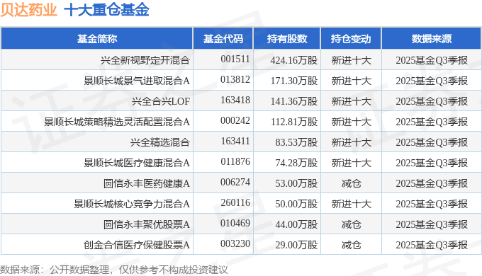 持有贝达药业最多的基金为兴全新视野定开混合,目前规模为98.04亿元,最新净值2.335(10月28日),较上一交易日下跌0.85%,近一年上涨36.6%。该基金现任基金经理为乔迁。
