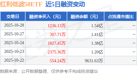 证券之星消息,10月28日,红利低波50ETF(515450)融资买入2751.55万元,融资偿还1515.42万元,融资净买入1236.13万元,融资余额1.54亿元,近3个交易日已连续净买入累计3371.29万元,近20个交易日中有11个交易日出现融资净买入。