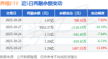 证券之星消息,10月28日,养殖ETF(159865)融资买入1947.95万元,融资偿还1183.22万元,融资净买入764.73万元,融资余额1.07亿元。