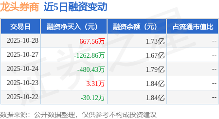 证券之星消息,10月28日,龙头券商(159993)融资买入1768.33万元,融资偿还1100.77万元,融资净买入667.56万元,融资余额1.73亿元,近20个交易日中有13个交易日出现融资净买入。