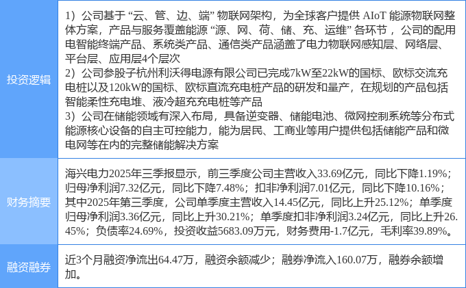 证券之星消息,海兴电力10月29日涨停收盘,收盘价35.11元。该股于10点21分涨停,1次打开涨停,截止收盘封单资金为3422.02万元,占其流通市值0.2%。