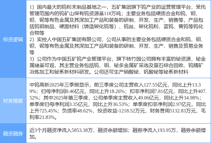该股为有色 · 钨,海南概念,有色 · 铋概念热股,当日有色 · 钨概念上涨5.65%,海南概念概念上涨4.69%,有色 · 铋概念上涨4.29%。