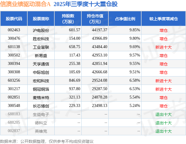 根据2025基金Q3季报公募基金重仓股数据,重仓该股的公募基金共10家,其中持有数量最多的公募基金为信达澳亚基金的信澳业绩驱动混合A。信澳业绩驱动混合A目前规模为7.13亿元,最新净值1.6992(10月28日),较上一交易日上涨1.4%,近一年上涨142.53%。该公募基金现任基金经理为刘小明。