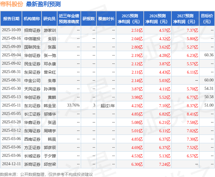 以下是详细的盈利预测信息: