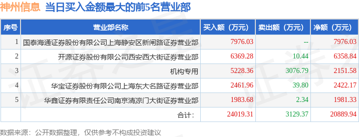 证券之星消息,沪深交易所2025年10月29日公布的交易公开信息显示,神州信息(000555)因日涨幅偏离值达到7%的前5只证券登上龙虎榜。此次是近5个交易日内第1次上榜。